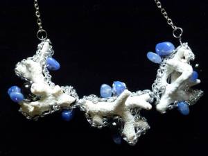 For summer 2014, I made these pieces of jewelry, mostly pendants, from some shells and broken coral from my stash of mementos. The pendants are made of aluminum wire, shell or coral, and various stones including agate, turquoise-like stones, and moonstone.