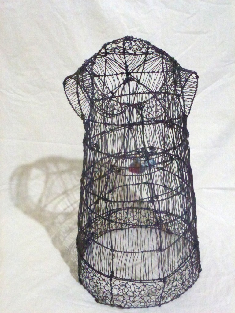 For “Consumption” group show, July 2018, Pinto Gallery, Antipolo. Materials: Wire, acrylic epoxy, clear epoxy and found objects (trash – plastic bag, bottle, cigarette butt).