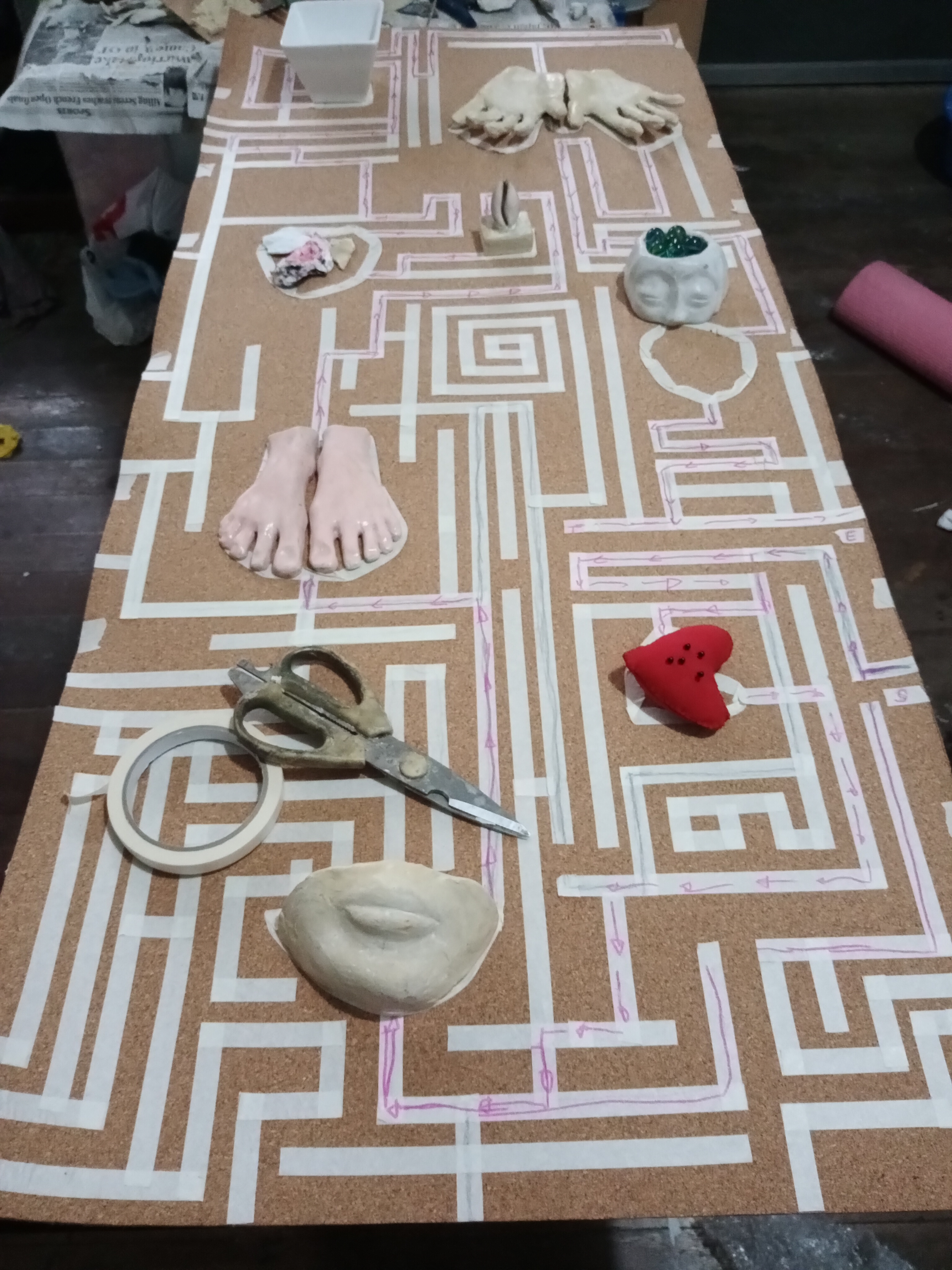 For this game/ maze, I used parts of old artworks. The following photos are work-in-progress photos.