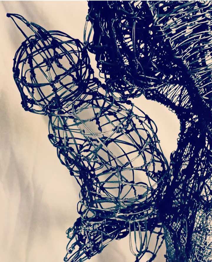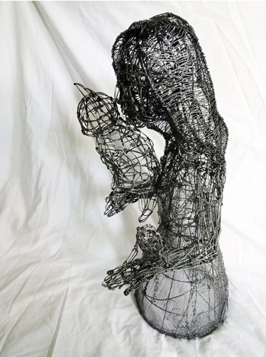 Mother & Cat. Screen, wire, acrylic epoxy. 22.5 x 12 x 11 in. 2021