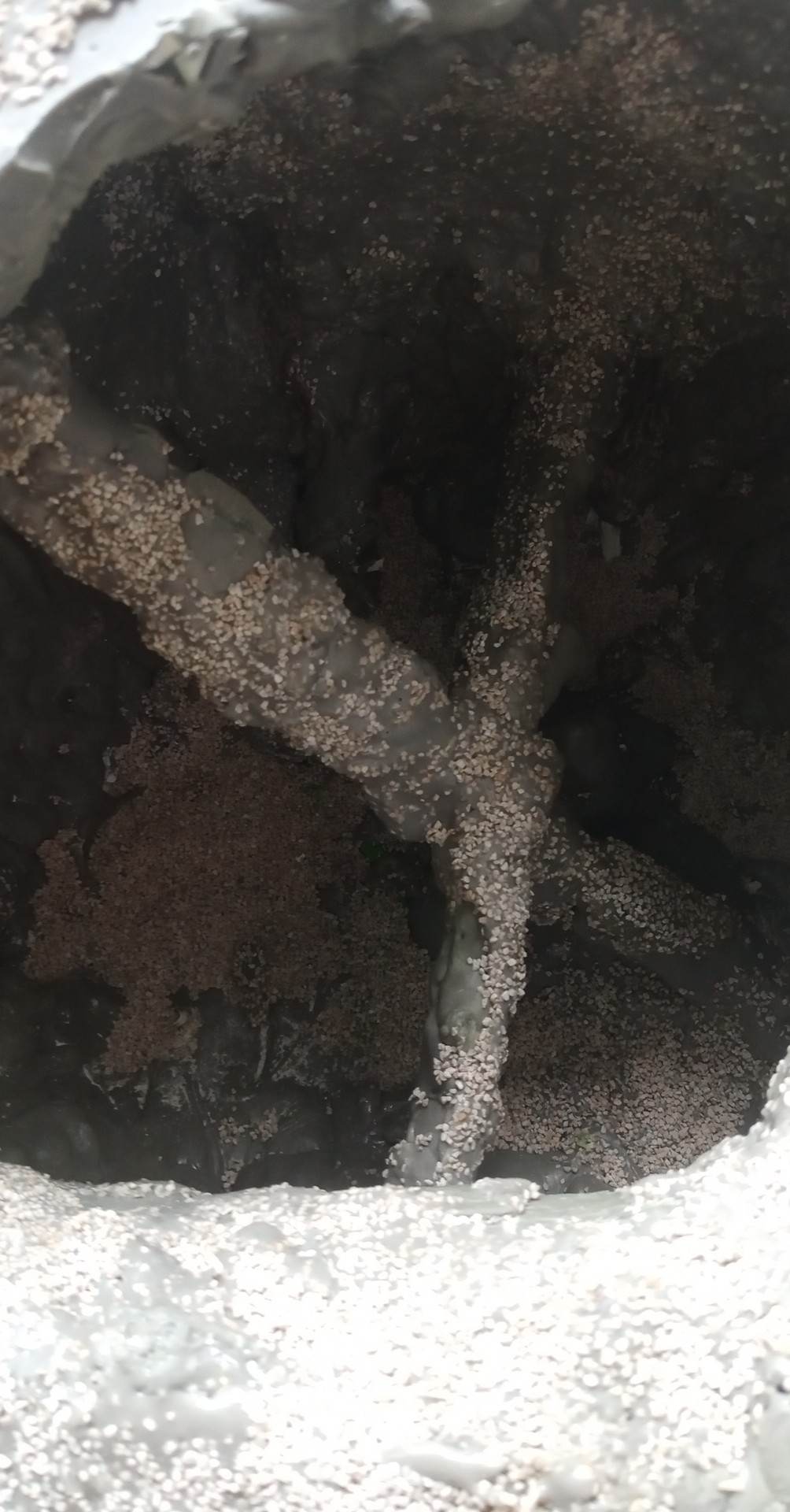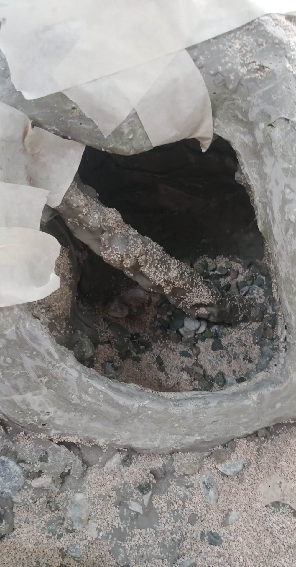 Paghilom . Marine Epoxy, stones, shell, sand. Solihiya (synthetic rattan) for reinforcement. Wood and wire covered with Marine Epoxy for the frame. 30x30x39 inches (height x depth x width). 2023