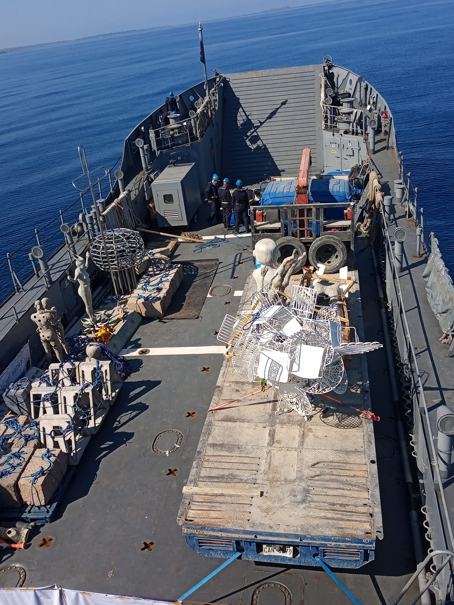 Some shots taken on the boat on May 1, the first of two days that it took to transport and submerge all the pieces. Know more about the project by reading this Facebook post by Dr. Joven Cuanang, Founder/ President of Pinto Museum.